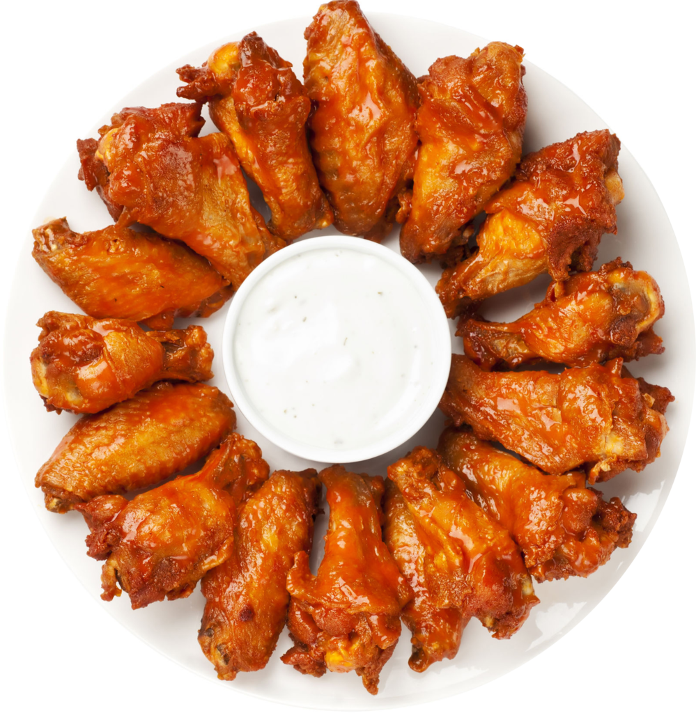 Choose From: Mild, Medium, Hot, BBQ, Honey BBQ,Teriyaki, Jalapeño Mango, Garlic Parm, Dry Rub: Lemon Pepper, Nashville Hot